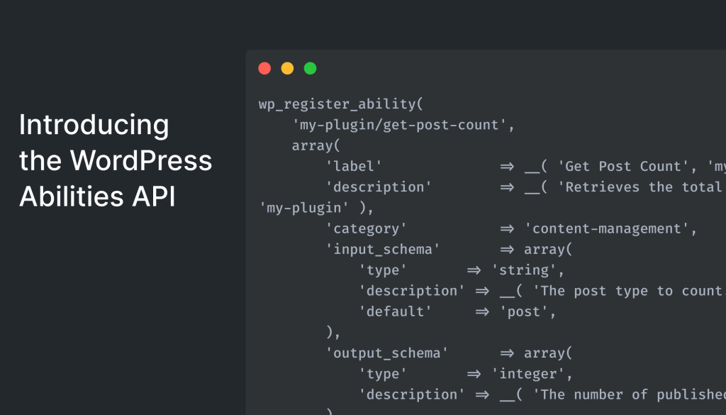 That line sounds like marketing copy, but it’s actually the most accurate way I’ve found to describe what the Abilities API is meant to do for WordPress. When WordPress 6.9 ships, tens of millions of sites will get a new, first-class API that essentially answers the question: